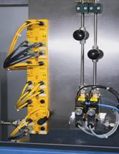非接触式磁性安全开关PSENmag监控压力室翻盖的位置,包括联锁和锁定机制。安全开关紧凑的设计节省了空间。连接器和电缆使所有应用设备能够快速、灵活的安装;以及监测各种冷却剂回路流量和温度-----在这一过程中多可用到20个独立传感器。
