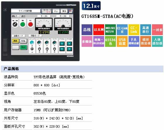 GT1685M-STBA | 12.1寸SVGA,65536色,AC电源,可扩展视频和RGB | 常用 |