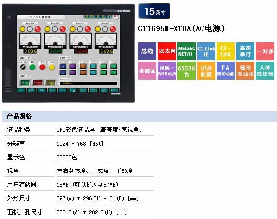 GT1695M-XTBA | 15寸XGA,65536色,AC电源,可扩展视频和RGB | 少用 |