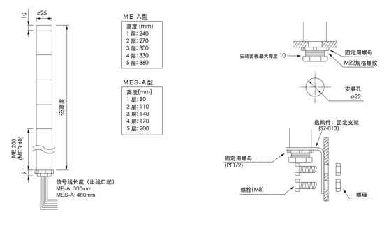 PATLITE派特莱MES系列型号一览:??